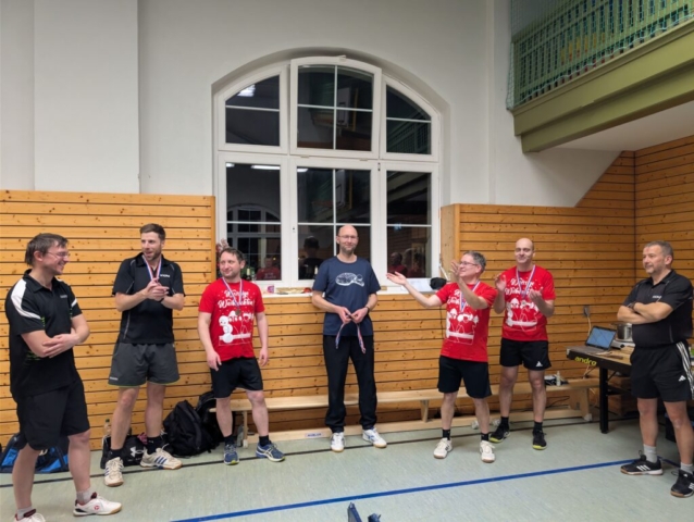 Völlig überraschend 😉 haben sich Joseph mit Sandro vor Rainer mit Lars und Stefan mit Matthias die Podestplätze gesichert. Nach einer negativen Überraschung gab’s am Ende umso mehr Positives: Tolle Stimmung, gute Gespräche, viel Einsatz – und besonders schön, dass der Nachwuchs so ambitioniert mit dabei war. Ein echtes Highlight war außerdem, dass einige, die es schon vor langer Zeit in die Welt hinausgezogen hat, wieder den Weg in die Halle gefunden haben. Ein paar haben wir jedoch wir vermisst – aber nächstes Jahr gibt es eine neue Chance.