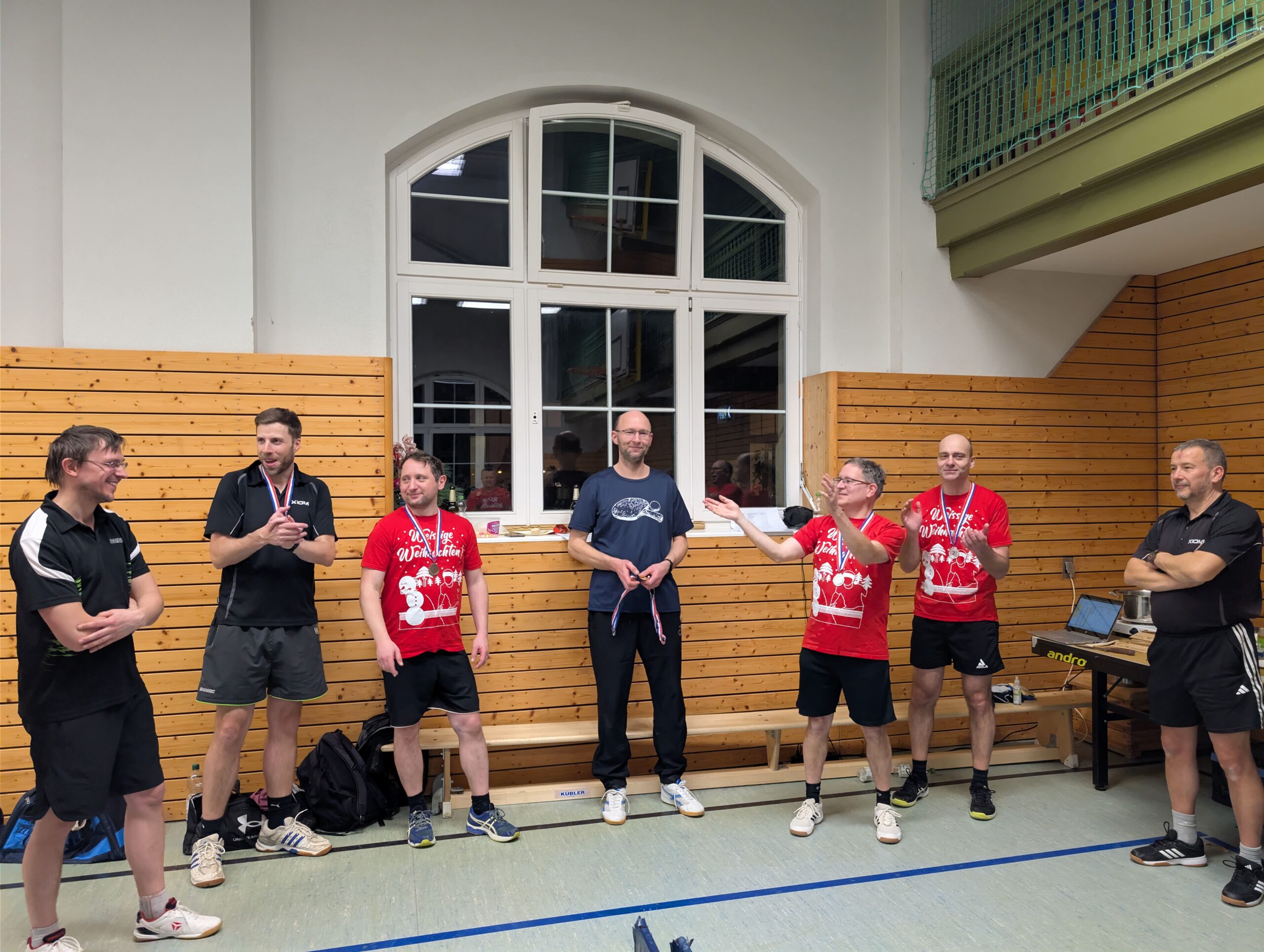 Bei der Gelegenheit gibt’s ein paar Eindrücke von unserer Weihnachtsfeier: Es war wieder richtig prima – super vorbereitet, und genauso schön war’s zu sehen, wie viele zum Gelingen beigetragen haben. Wir waren erstaunlich viele in der Halle und haben mit den kleinen Schlägern im Doppelturnier einige heiße Duelle ausgefochten und einen schönen Abend genossen.
